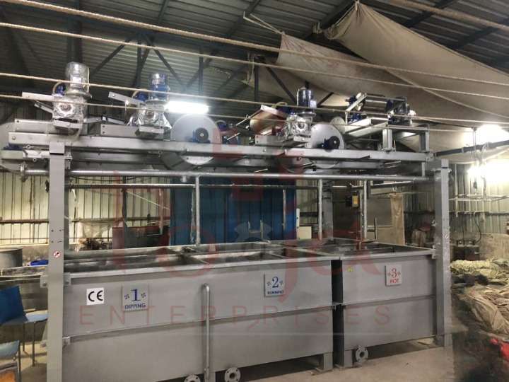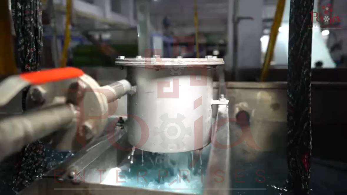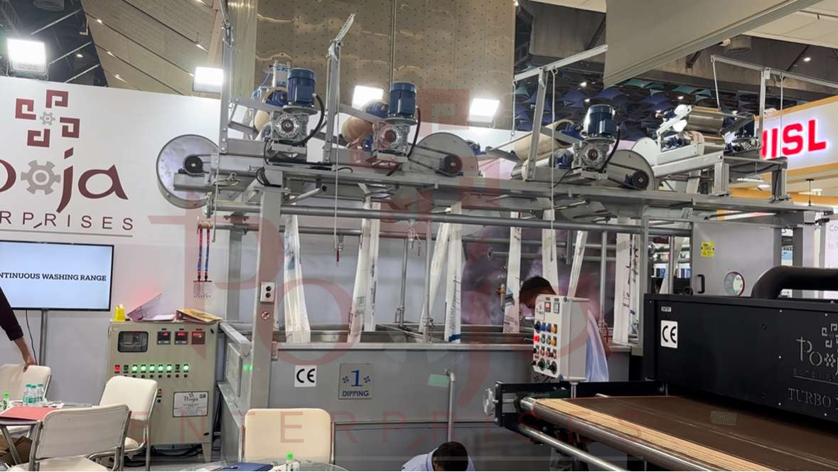 Our machine's Heavy squeezer roll set extracts maximum moisture, eliminating the need for a hydro extractor. The fabric then moves directly to the drying range, ensuring efficient processing. The acid and silicon-treated water in the tank further enhances fabric quality.