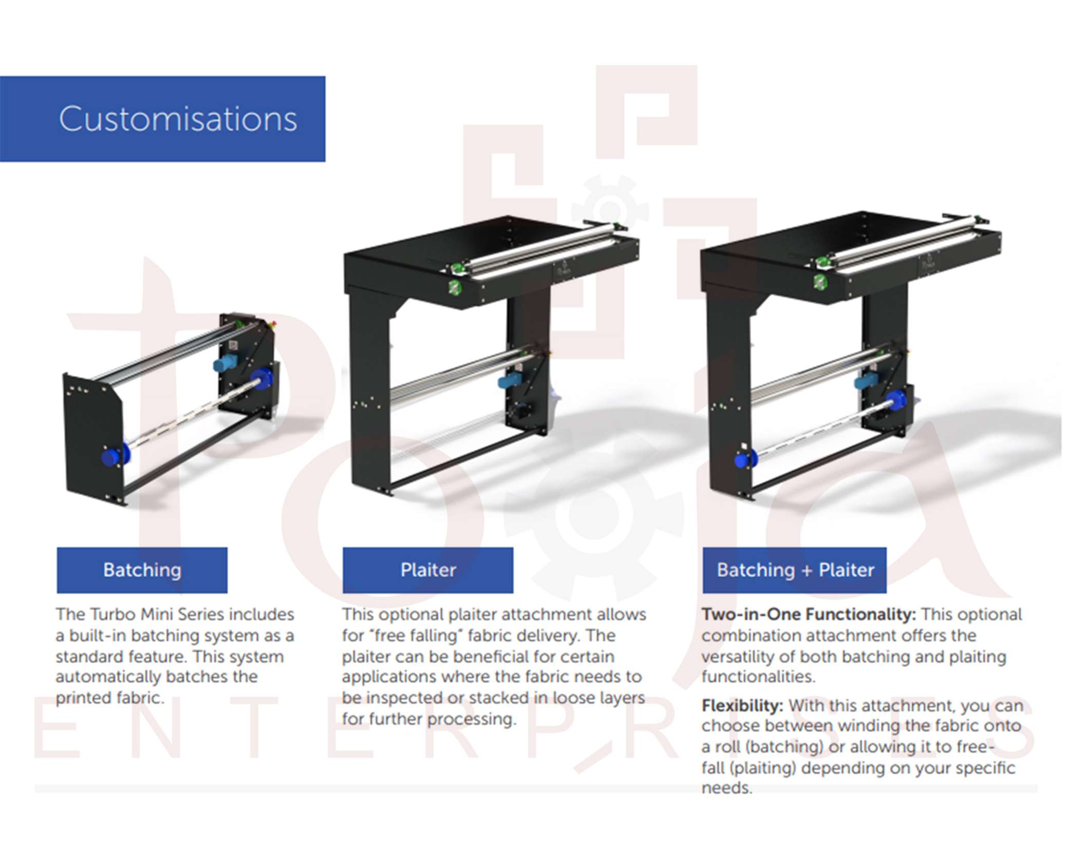 Customized Tension Control: Tailoring your printing experience, the TURBO MINI SERIES features an advanced tension-controlling system. Adjust the fabric tension according to your precise preferences, ensuring that every winding meets your exact specifications.